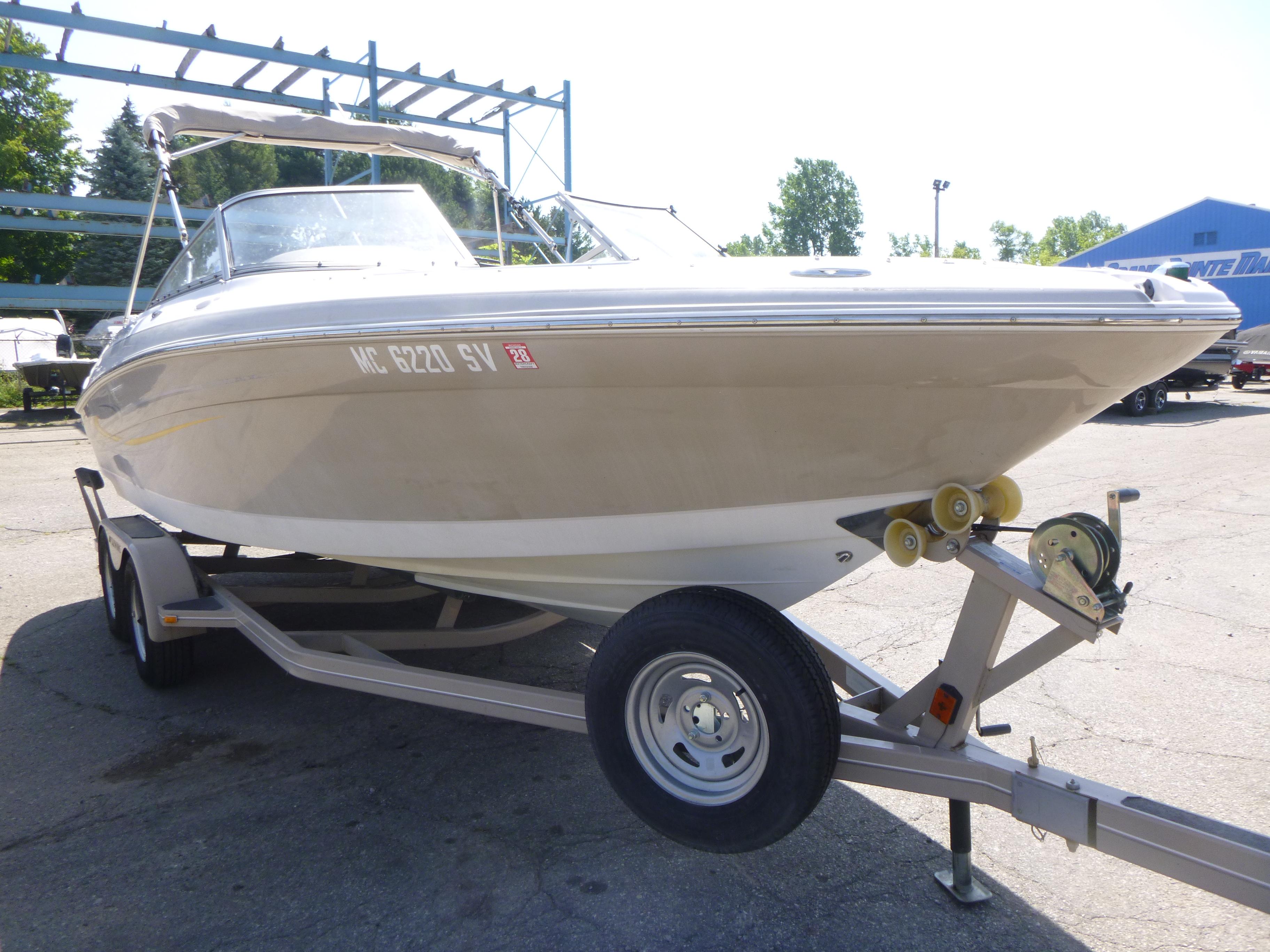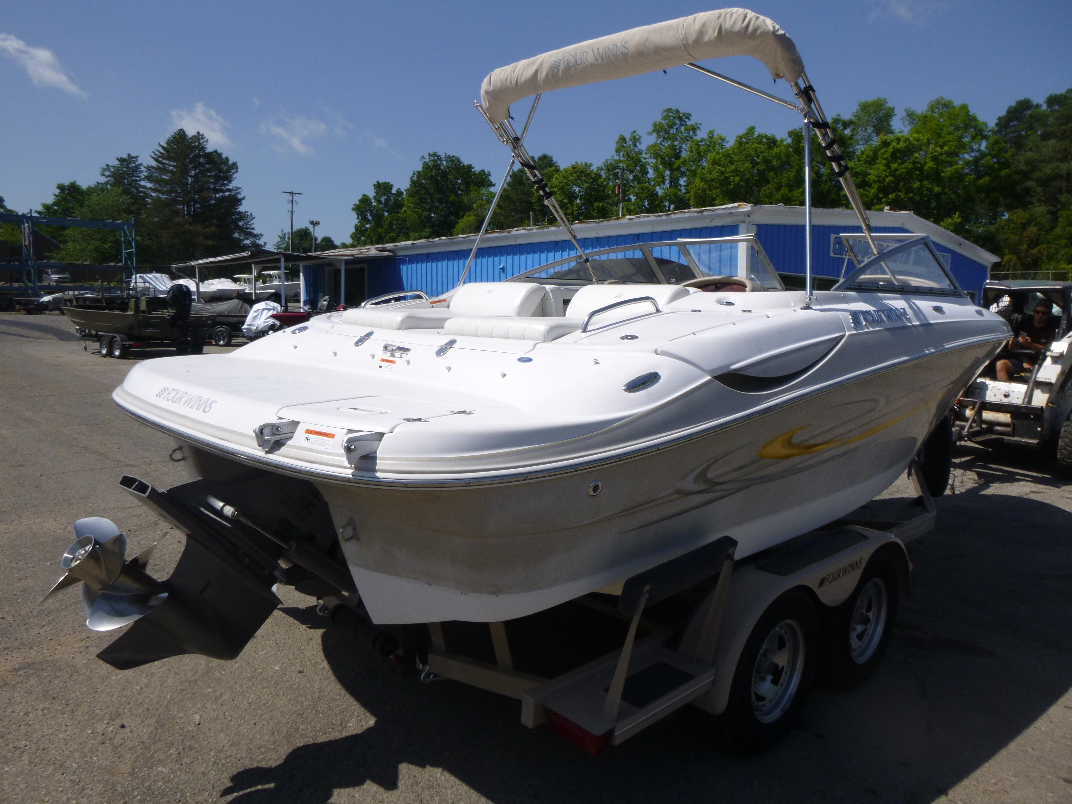 2006 Four Winns 220 Horizon with Volvo 5.0L Duo Prop, trailer, bimini, snap flooring & 221 hours. Watersports-ready family bowrider at $19,999. Michigan.