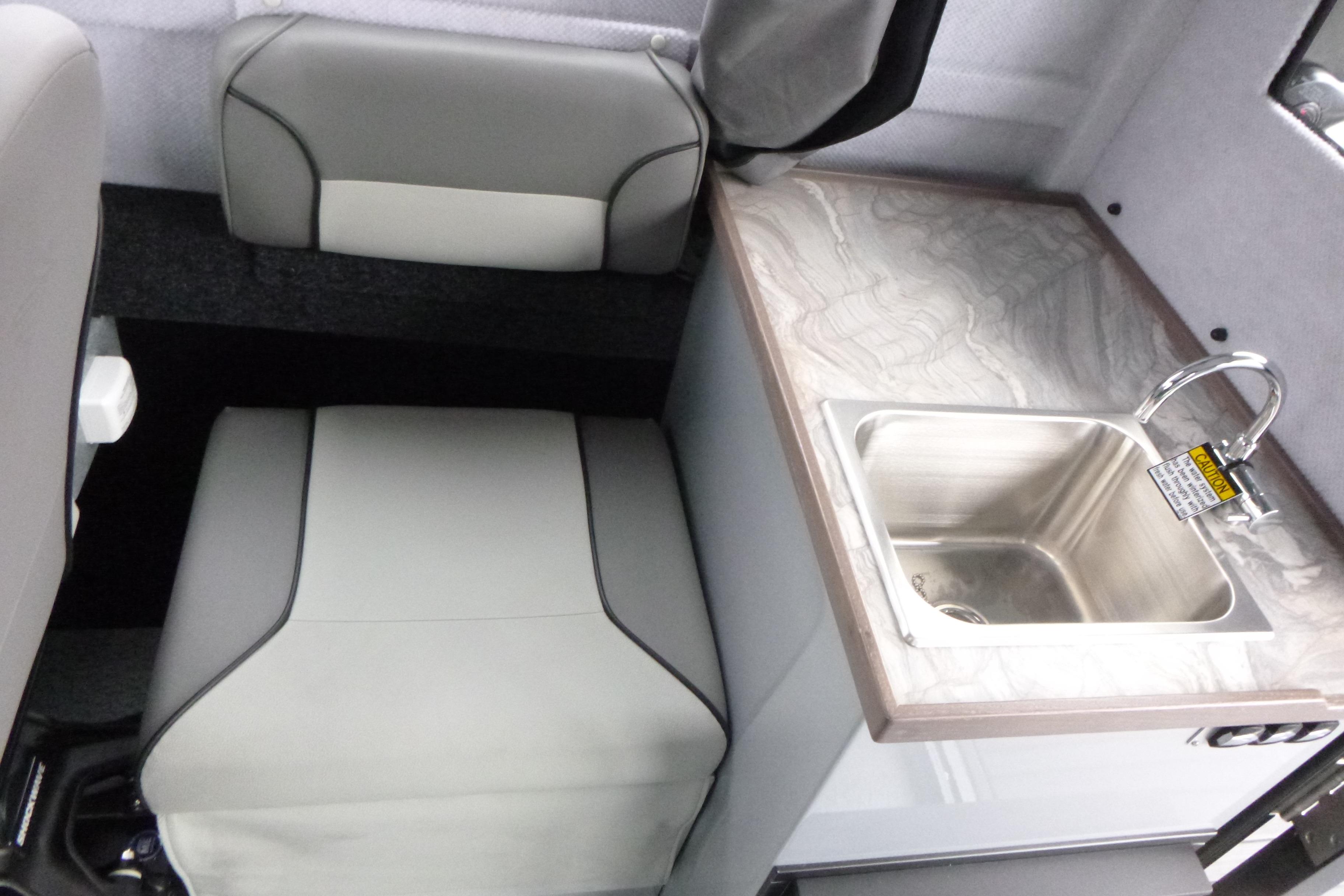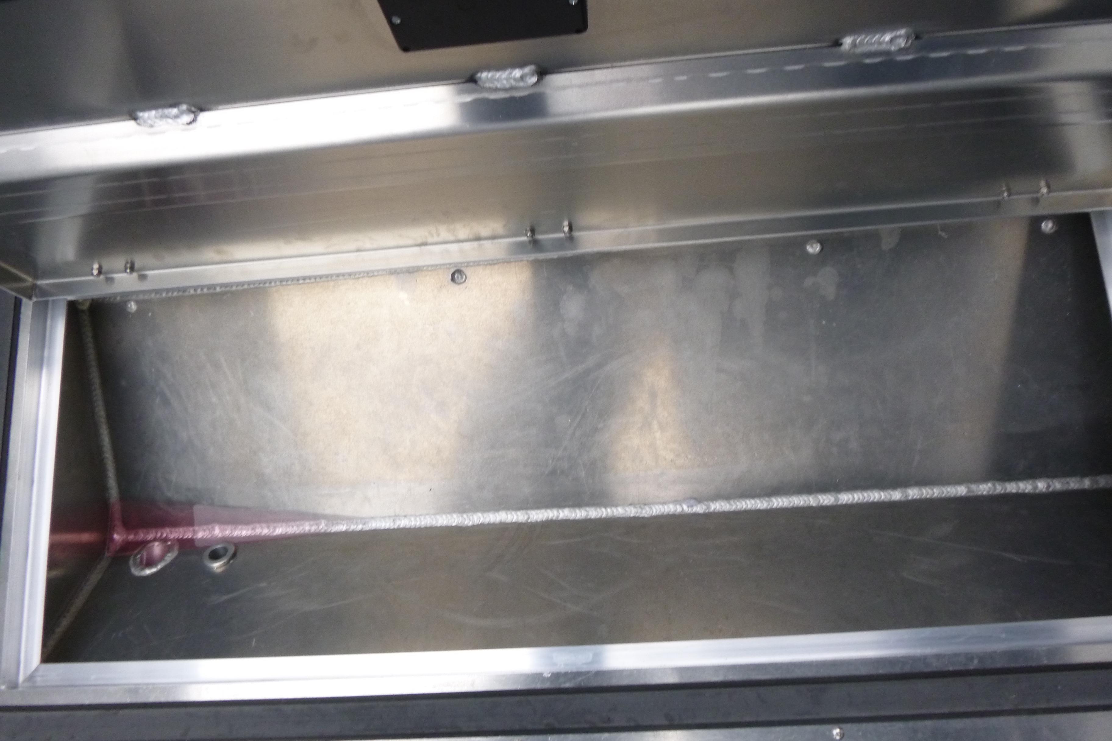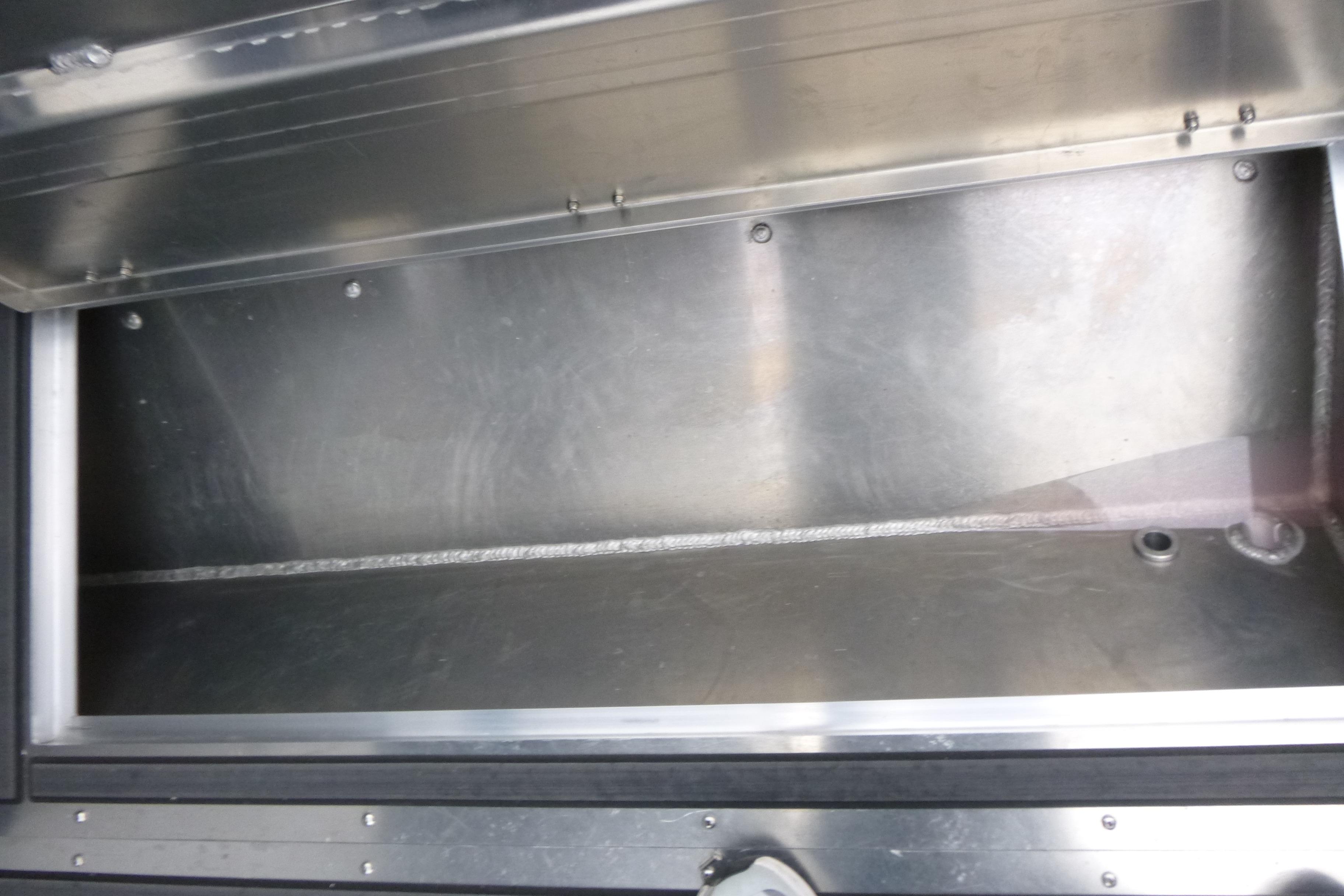 Starboard aluminum galley cabinet with stainless sink, faucet, and freshwater tank