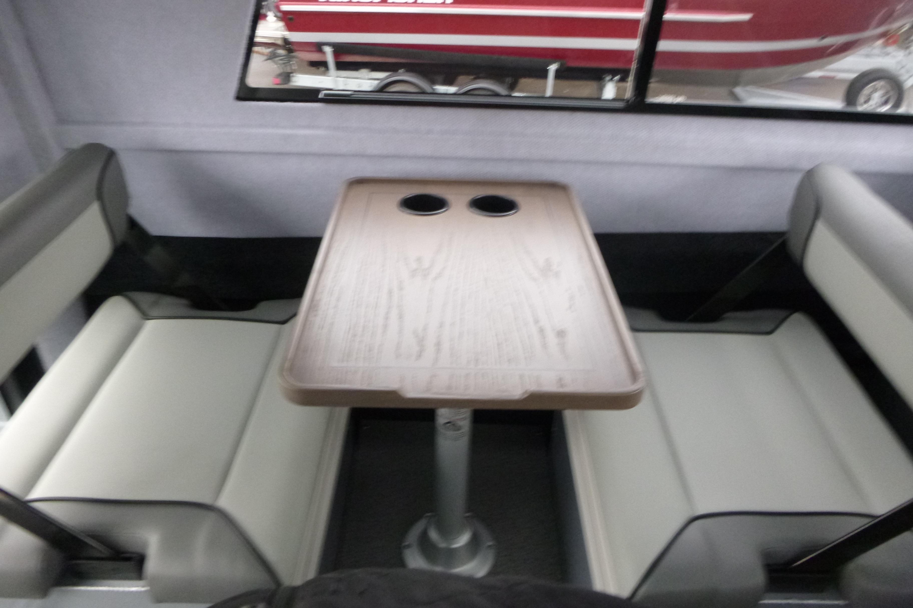 Dinette with dual flip-back seats, storage, and dining table