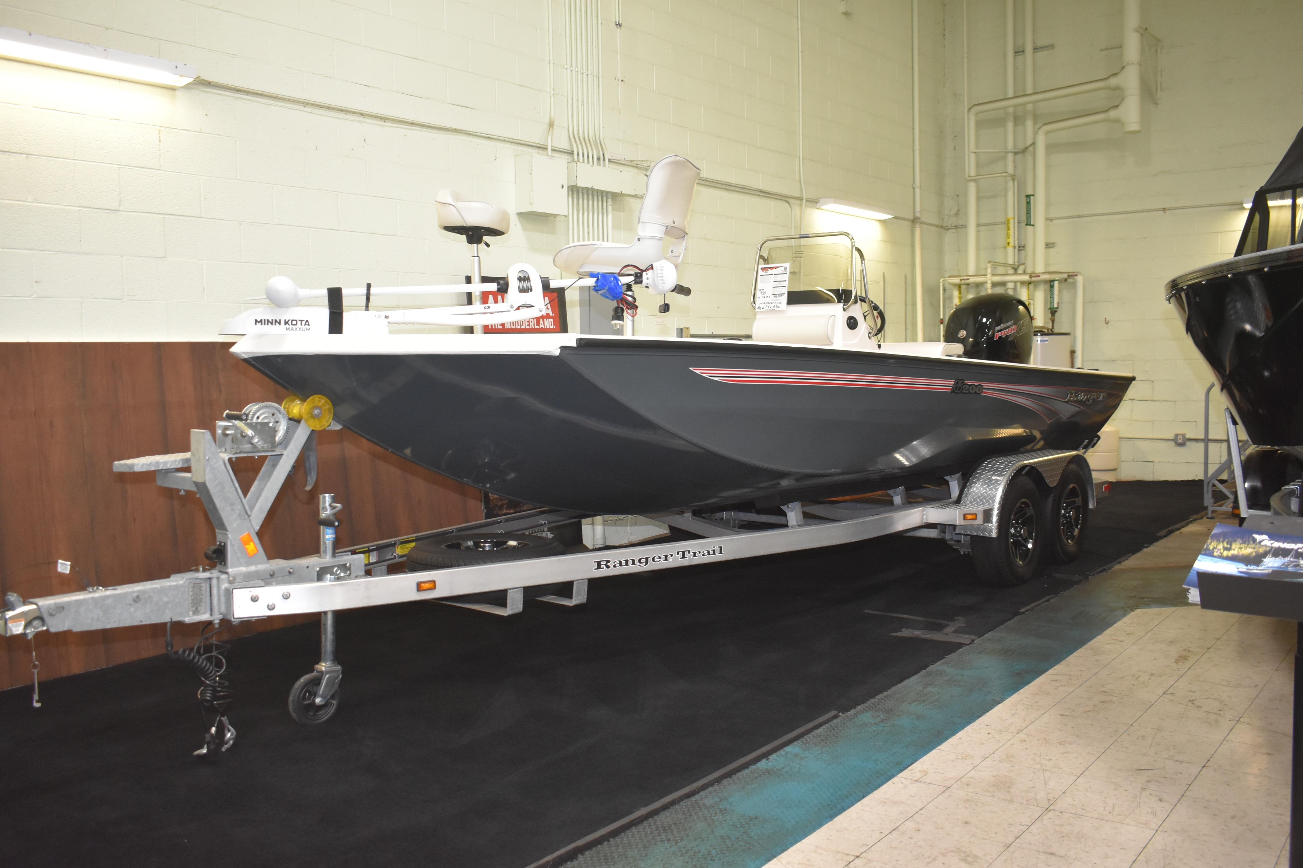 Save $5,900 on a 2024 Ranger RB200 with Mercury 150 Pro XS, electronics, trolling motor & trailer. Liquidation price $42,650 at Grand Pointe Marina Michigan.
