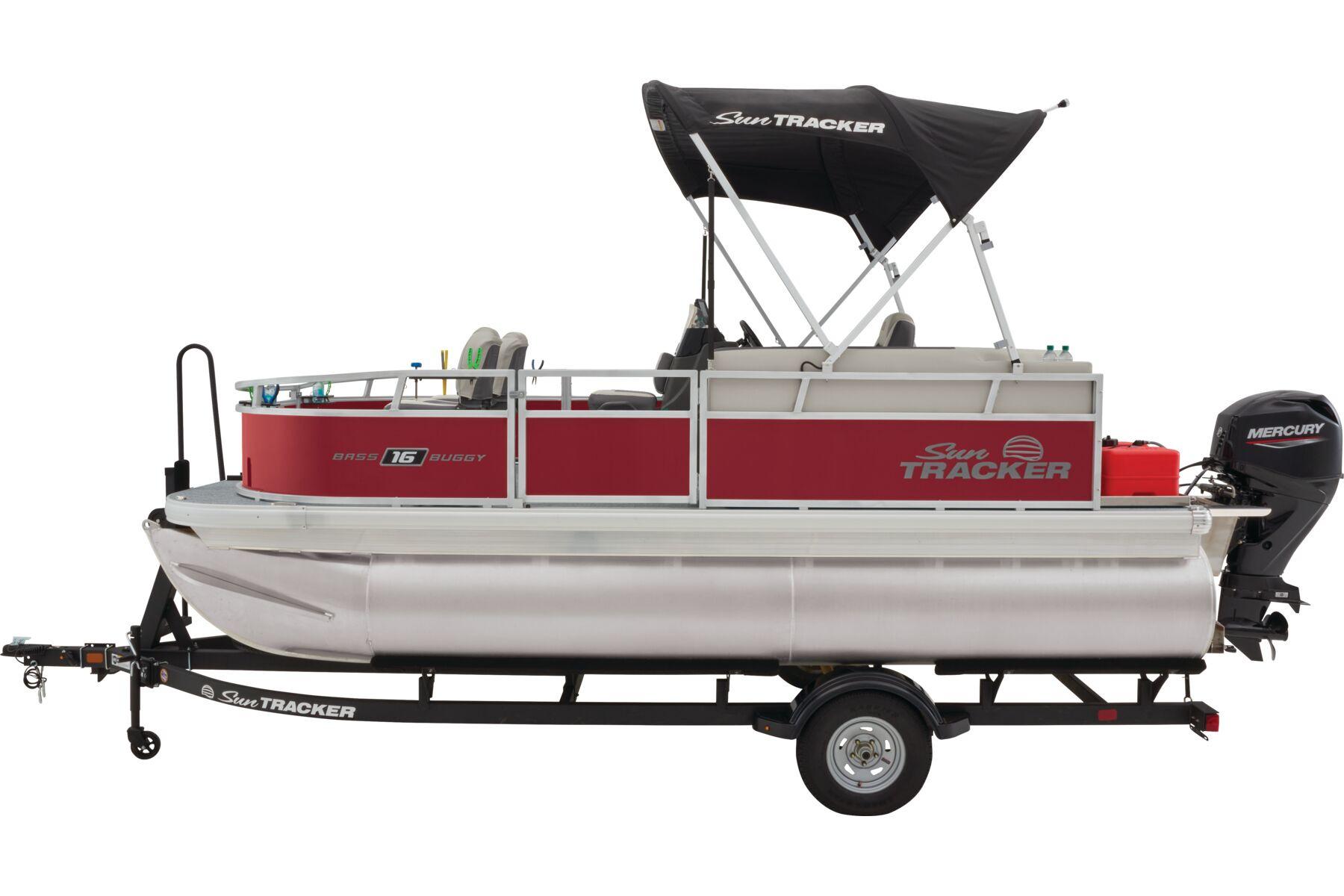 Shop the 2026 Sun Tracker Bass Buggy 16 XL Select with Mercury 50HP—affordable 16′ fishing pontoon, 7-person capacity & all-new redesign. Available now at Grand Pointe Marina, MI.