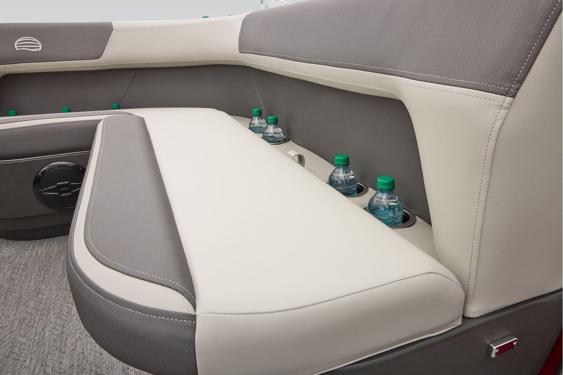 Forward-console seat w/molded-in grab handles & below-cushion livewell