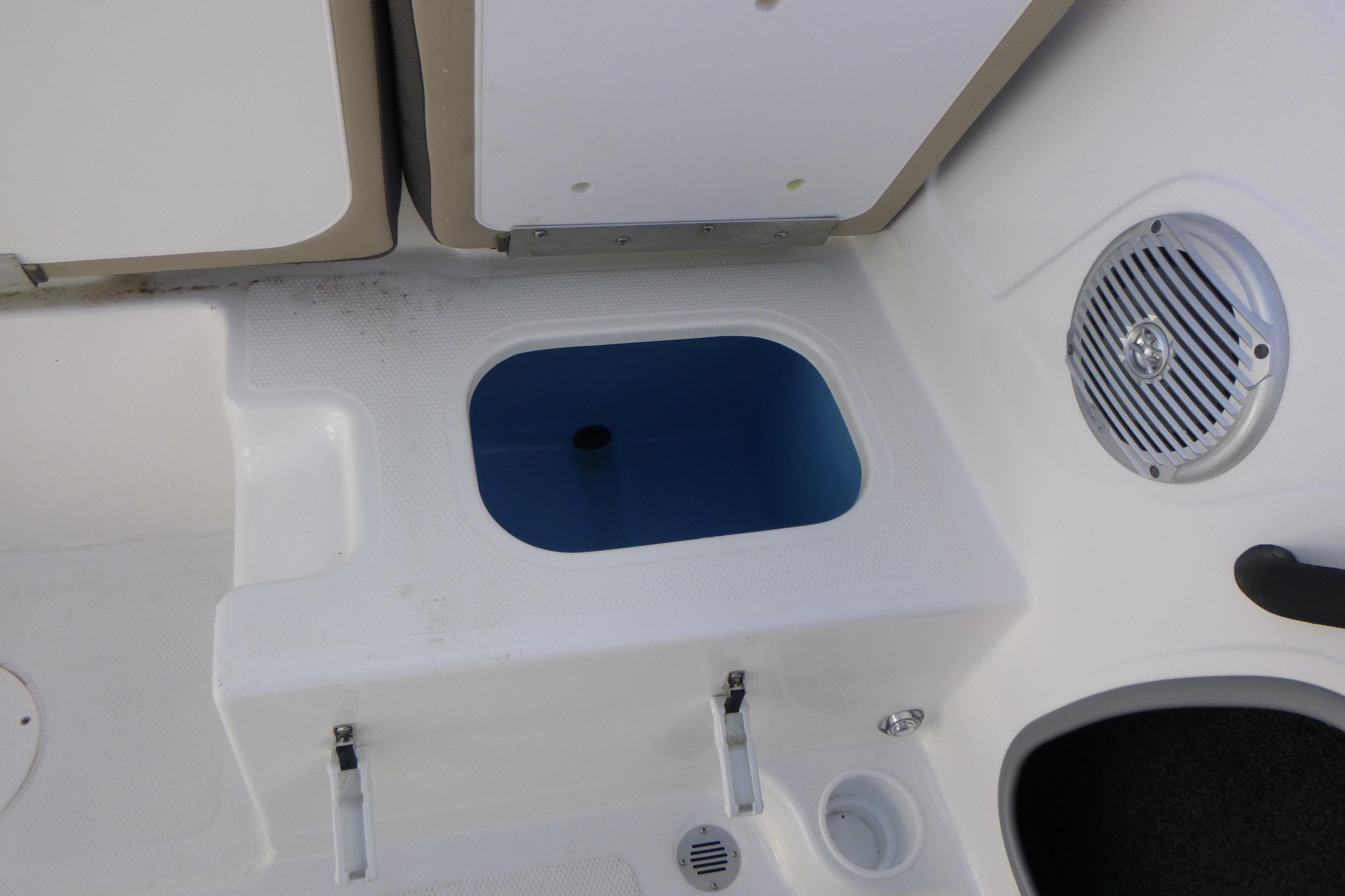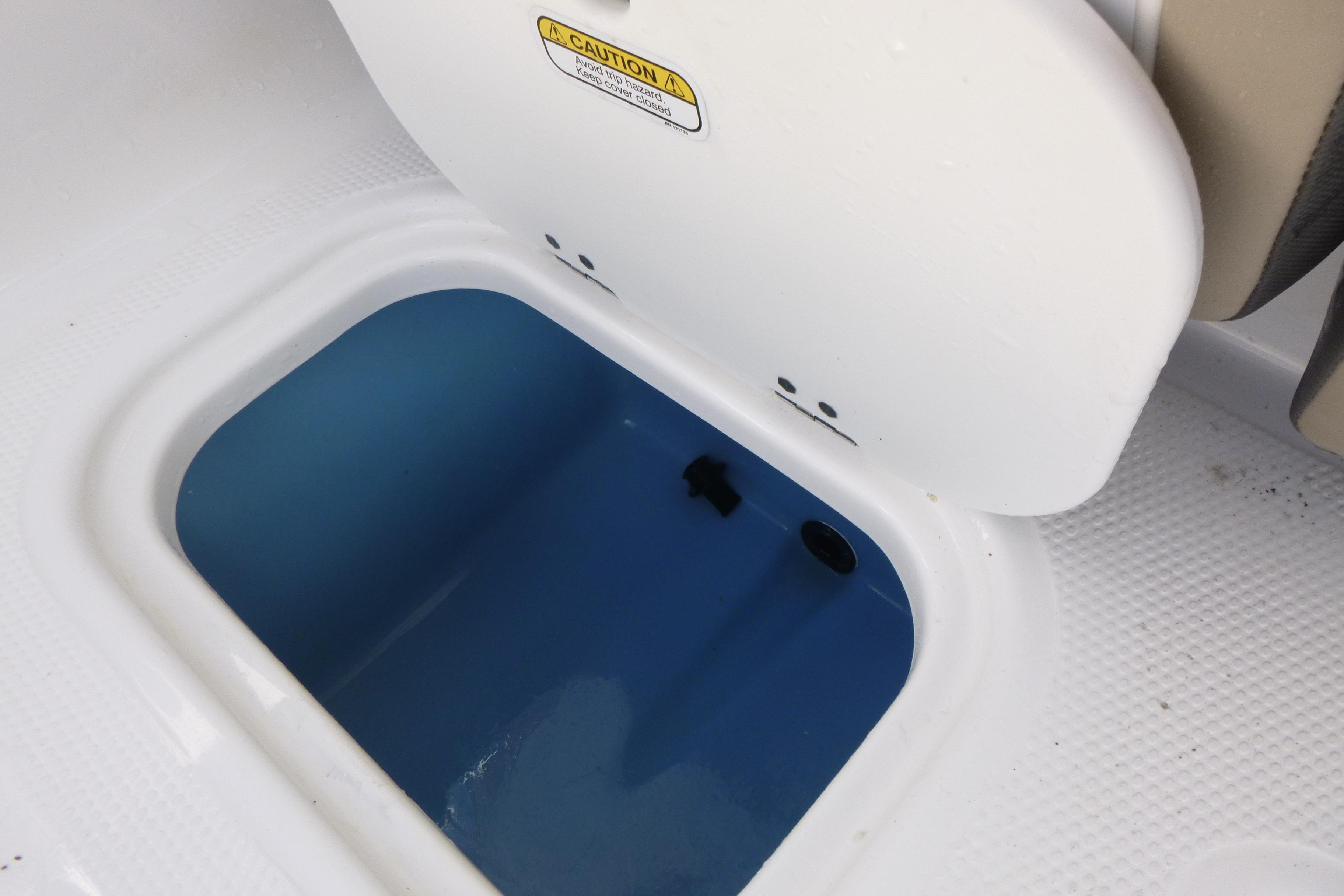 - 10-gal. (37.85 L) plumbed, insulated & aerated livewell w/500 GPH (1,892.71 LPH) pump, adjustable spray head & overflow drain