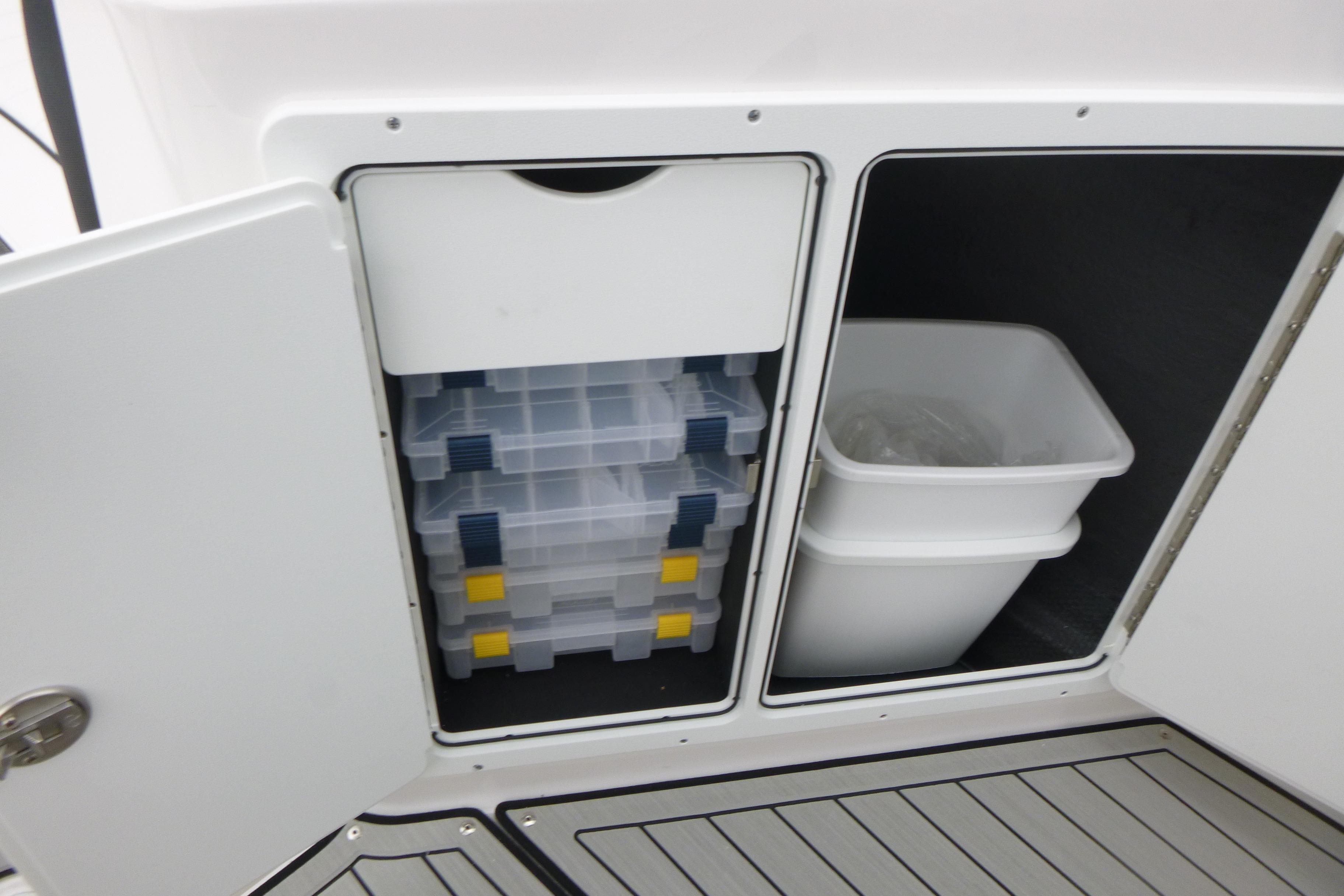 Tackle storage pods, gunwale rod storage & in-floor storage